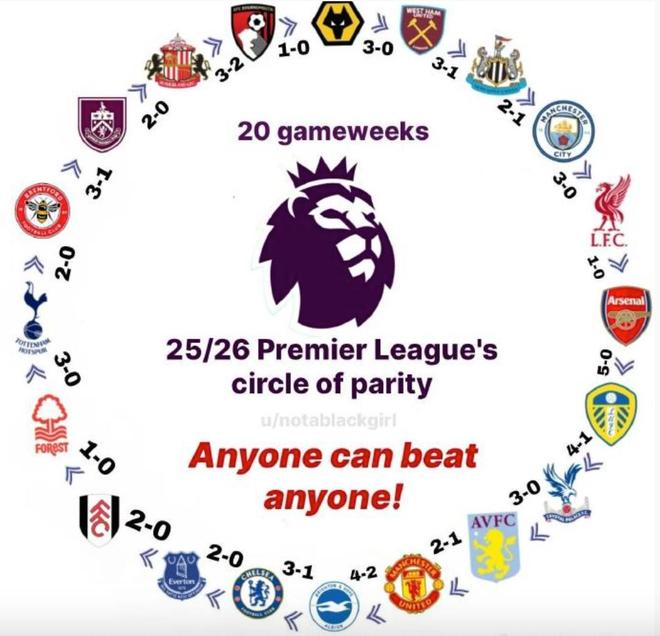 北京时间1月4日英超日报,在英超第20轮的比赛中,狼队主场3-0击败了西汉姆联,取得本赛季的英超首胜。而在狼队击败西汉姆联之后,本赛季的英超也形成了任何球队可以击败任何球队的完美闭环。2025-26赛